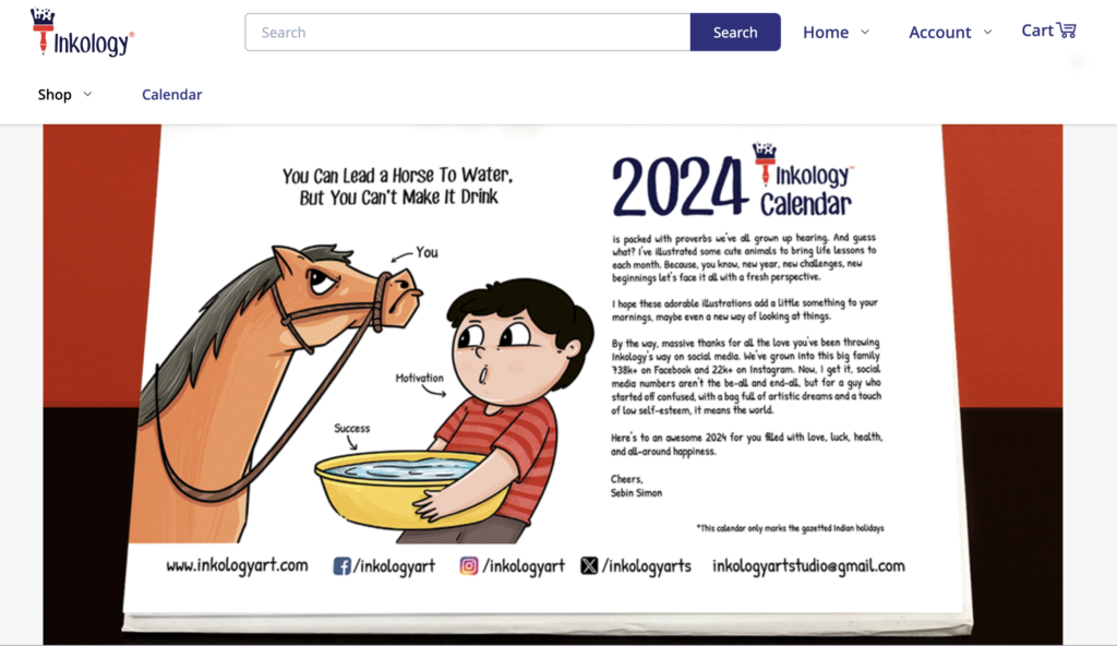 This is among those Instamojo online stores that shows the magical way of bridging the gap between ink and the mind. This online store covers interesting and emotional works of art. From sophisticated fonts to bold fonts, Inkology highlights the power of ink as a medium.
