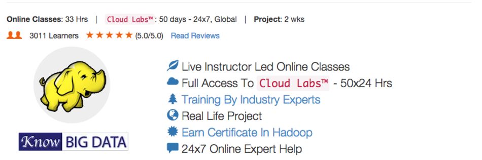 Tools Covered: HDFS, MapReduce, Pig, Hive, HBASE, Zookeeper, Flume, Sqoop, Oozie, Spark, Mahout