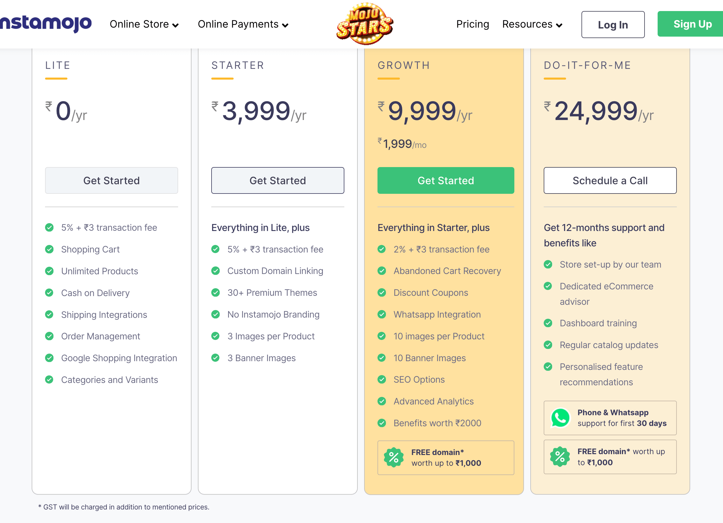 To convince customers to buy your products, let them have a few options to choose from. This can be in terms of pricing or a variety of products. As an example, consider the Instamojo pricing page: