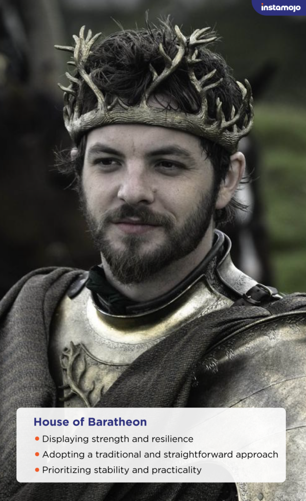Entrepreneurs scoring between 5-50 find themselves aligned with the steadfast House of Baratheon. Much like the Baratheons’ strength and resilience, you take a traditional and straightforward approach to business.