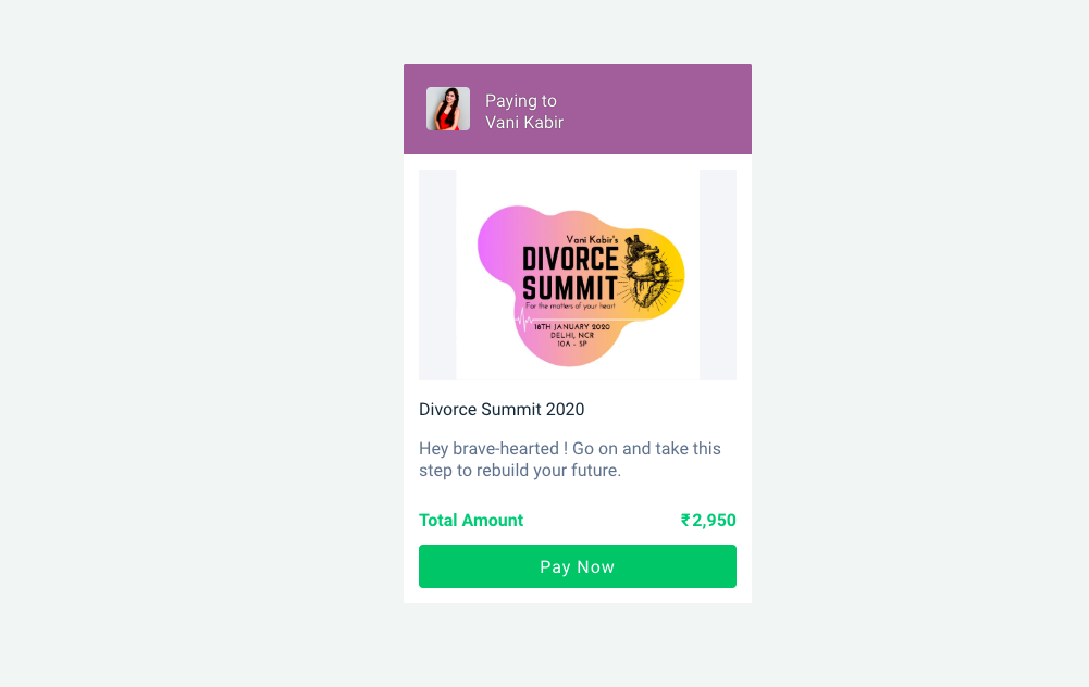 And she found us! Vani uses Instamojo to sell tickets for her event – The Divorce Summit. She integrated Instamojo’s payment gateway onto her website, which allowed customers to quickly click on the event and register. It also helped that there were several online payment options for people to choose from.