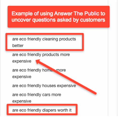 For instance, if you’re selling eco-friendly products, Answer The Public provides questions like these: