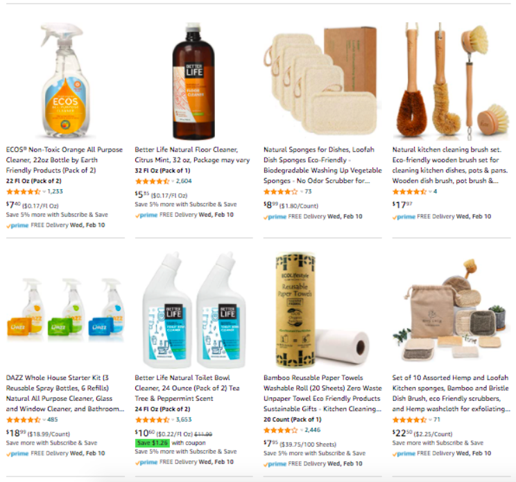 For example, an Amazon search reveals competitors already selling eco-friendly cleaning products: