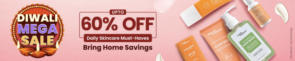 - Radiant beauty: The Diwali mega sale offers natural skincare and beauty products for a bright, glowing you.