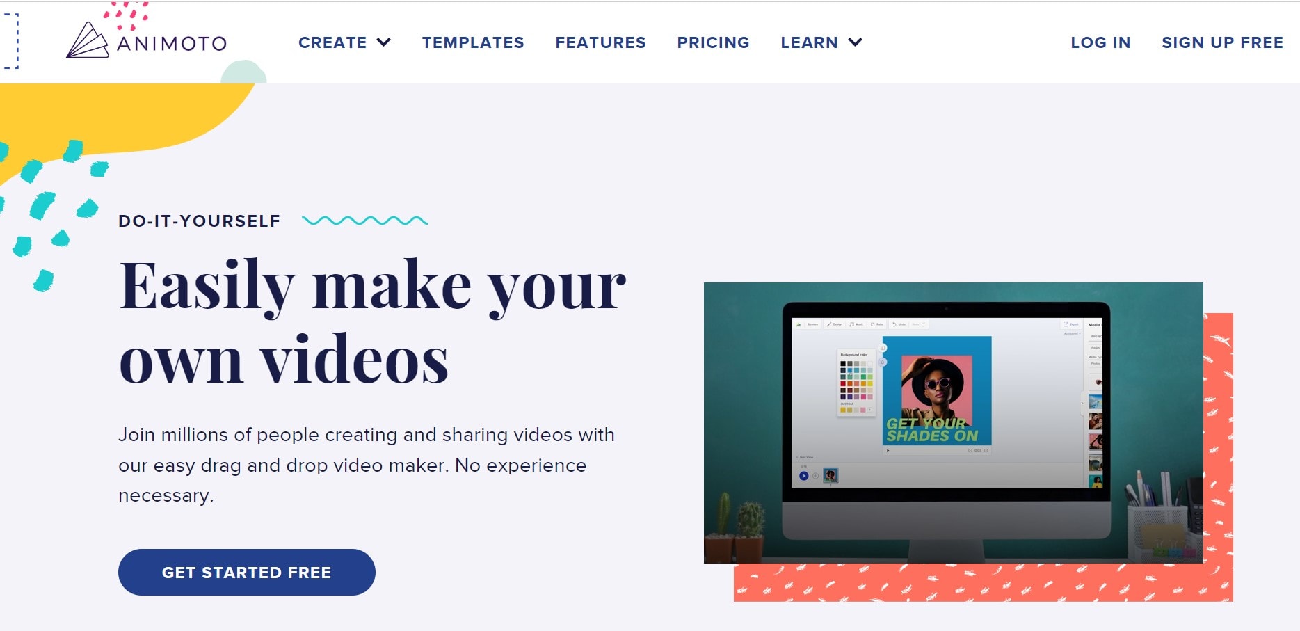 Animoto allows you to pick photos, texts, videos, and music from its library and create a video. You can quickly post these videos on your company website and social media handle.
