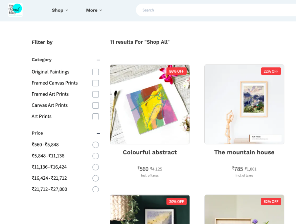 When you have a wide range of products like the Brush Story, having product filters helps the customers narrow down their choices.