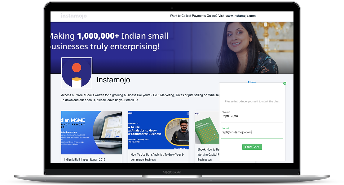 Instamojo online store LIVE chat