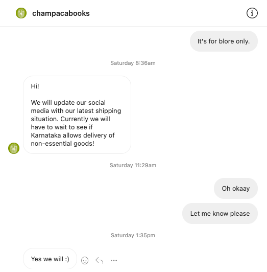 For example – Champaca Cafe, a hyperlocal small business in Bangalore, informed their customers ahead of the lockdown that all orders will only be shipped post-May 24th. They continued to encourage their customers to shop from their website by posting on social media, conducting webinars with authors, and keeping customers informed of new products.