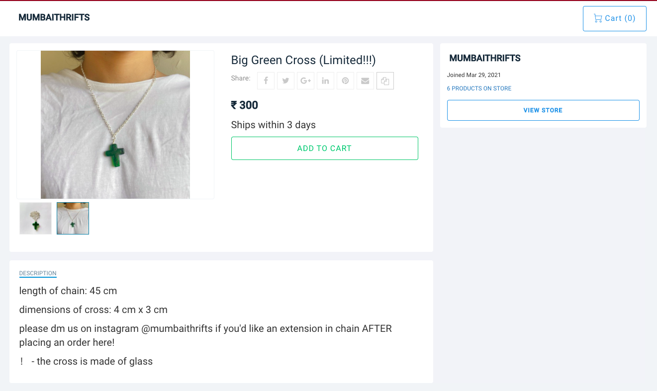 Mumbai thrifts, a premium online thrift store on Instamojo, sell limited items of high quality (second-hand items) to their customers.