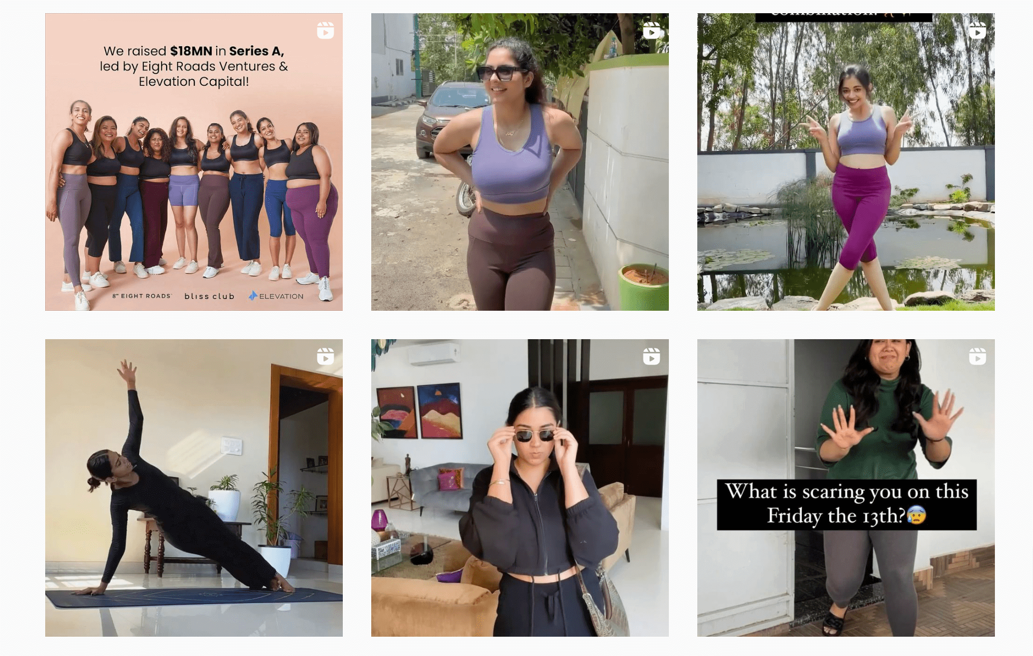 The brand is a masterful example of user generated content (UGC) in action. BlissClub features women of diverse body shapes and sizes. As quoted from their Instagram bio ‘On a mission to spread happiness thru movement for #WomenWhoMove!’