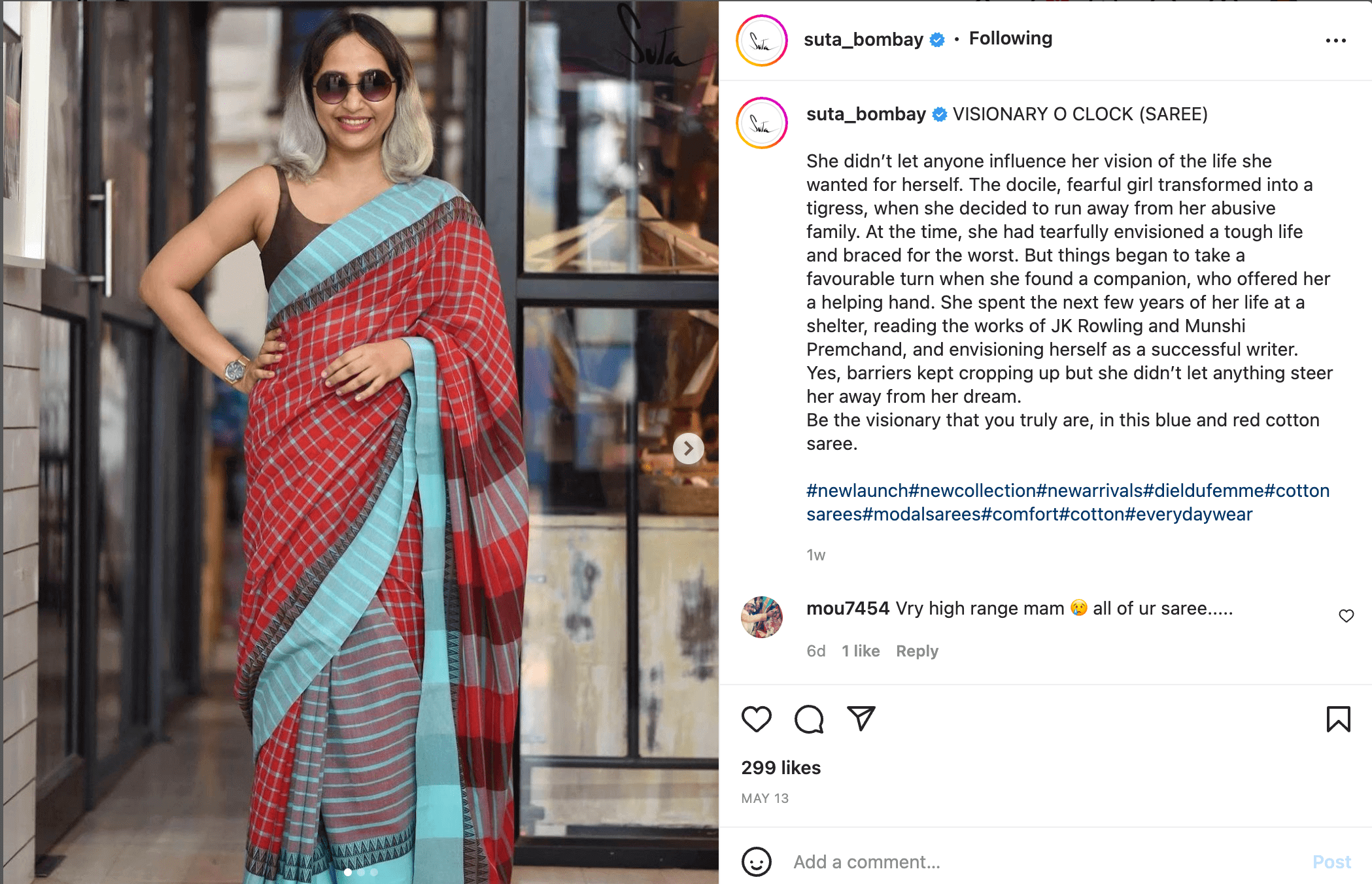 Suta touches a chord with their audience by blending their stories and theirs as part of their brand.