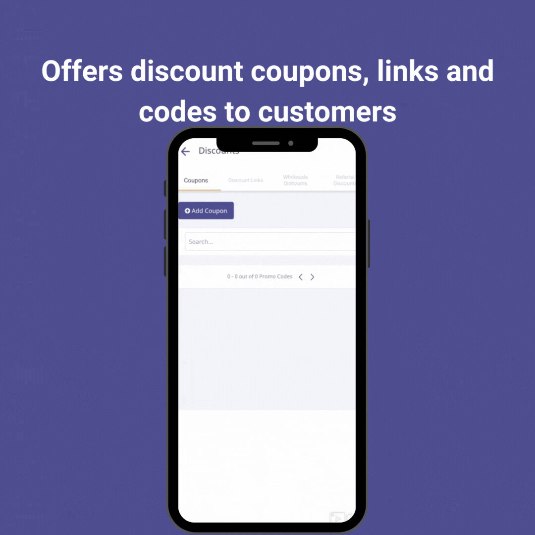 After you create a discount coupon, you can share the discounted URL with a specific set of customers over email or SMS. To create a discount link, add the code you wish to generate a link for and enter the amount. You can also set a limit to the number of products to include for that discount. Once added, tap on ‘Generate Link’ and your discounted product link will be shown in the list.