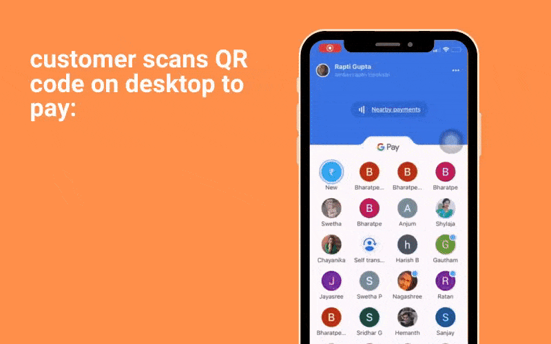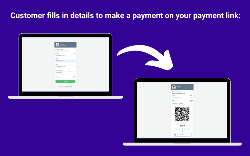 All you have to do is create a payment link and your customers will be able to see the QR code when they click on your payment link and enter their contact details. The code is refreshed every 20 minutes and is available only on the desktop for better scanning.