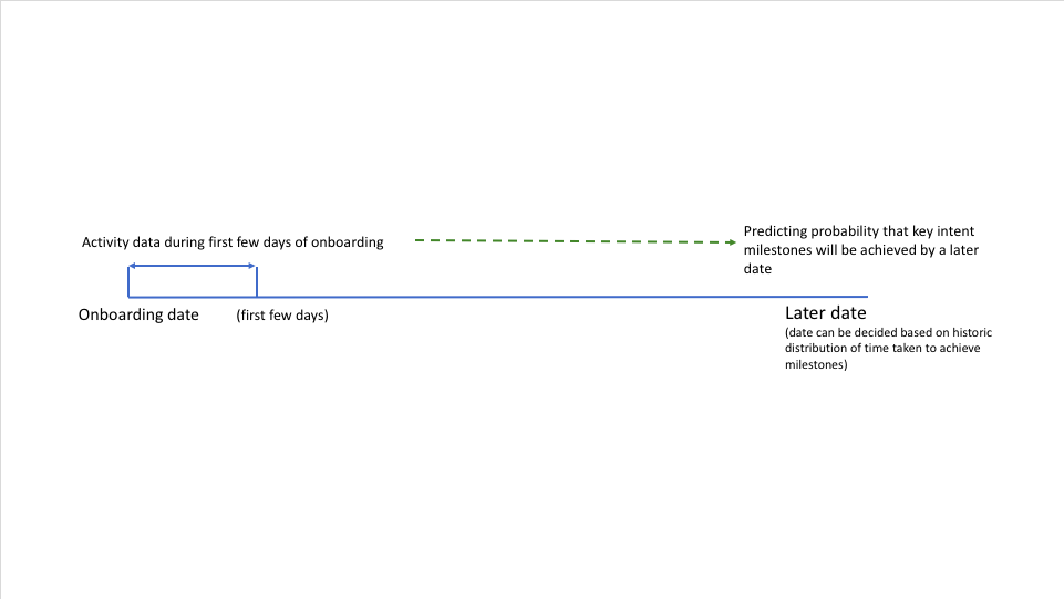 This can be defined using a specific activity that merchants have done on our platform that has been historical indicators of high intent. A supervised classification model works here, as we have true labels for historical data.