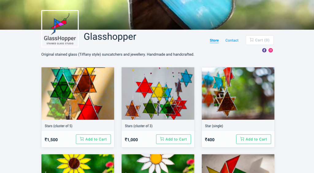 The products sold here are as interesting as the name of the brand. Located in Bangalore, Glasshopper aims at reviving stained glass art. The brand makes different creative products from stained glass. Their items range from shining sun catchers to massive door panels. The brand also makes corporate gifts in all sizes and shapes.