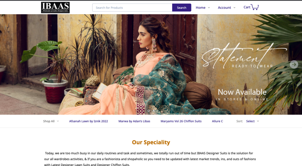 Traditional attires are never out of style! Ibaas Designer Suits helps you stay with the current trends and sells clothes online that are completely in fashion. Their unique selling point? They bring to you traditional suits designed by the big names in Pakistan for wholesale prices!
