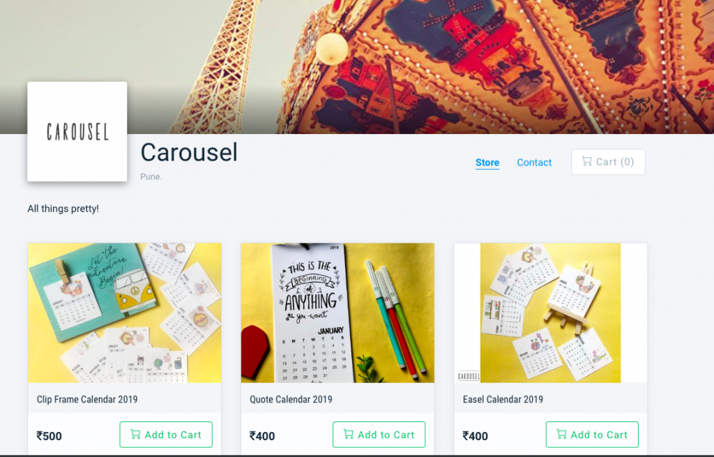 The Carousel store was started keeping in mind artists who love personalized products and enjoy gifting their family and friends. From large home decor pieces to nifty everyday items, Carousel creates a wide range of products to choose from.