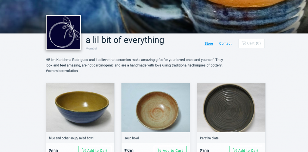 Started by Karishma Rodrigue, this minimalist, creative ceramic pottery business allows you to make amazing gifts for your loved ones. The pottery is organic, not carcinogenic and handmade using traditional techniques of pottery. From paratha plates, soup bowls to trinkets, a lil bit of everything is as its name suggests, a ceramic delight of little everything.