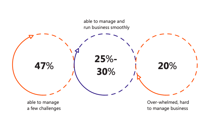 About 47% of the MSMEs(those who make use of digital payment solutions were surveyed) are only able to manage a few of the critical challenges, and 20% are overwhelmed by the hard-to-manage challenges.