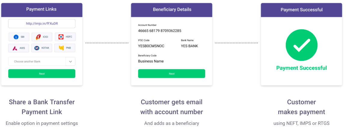 Instamojo has enabled NEFT/RTGS payment modes for small businesses, besides other modes of payment like digital wallets, UPI and Debit/Credit card (with no transaction fees!)