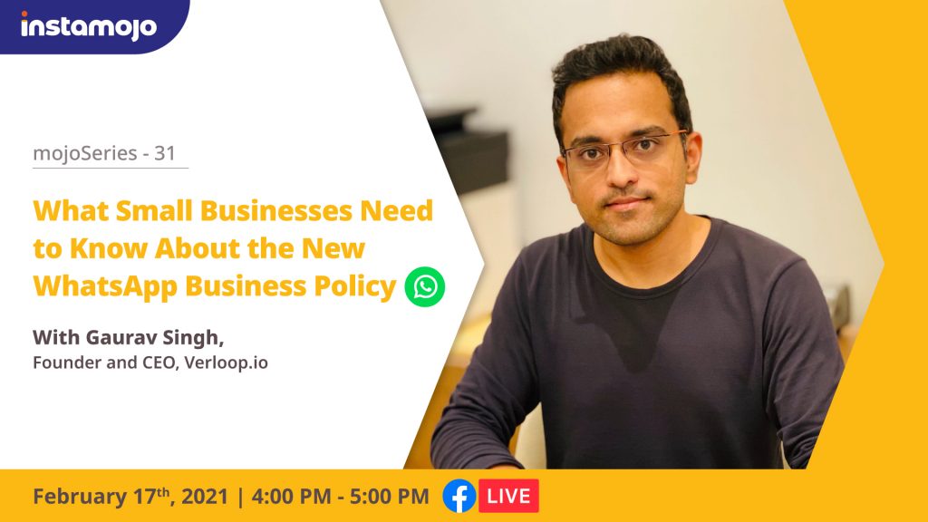 Join us tomorrow for an interactive LIVE webinar with Gaurav Singh, Founder and CEO of Verloop.io to discuss how the new WhatsApp business policy affects your business.