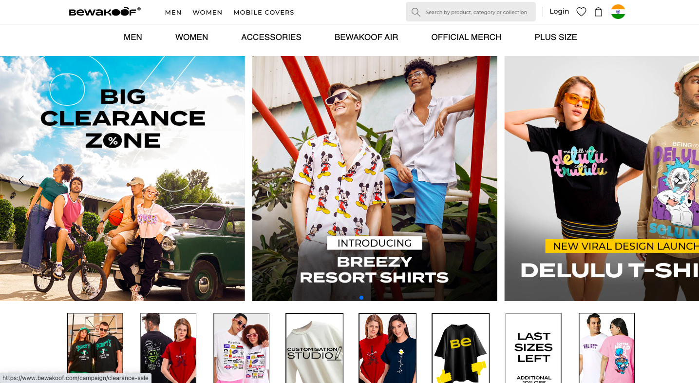 Why it Works: Bewakoof.com caters to the youth in India with its quirky and pop culture-inspired fashion. Their niche focus on trendy and casual clothing appeals to the millennial and Gen Z audiences who prefer expressive and bold fashion choices.