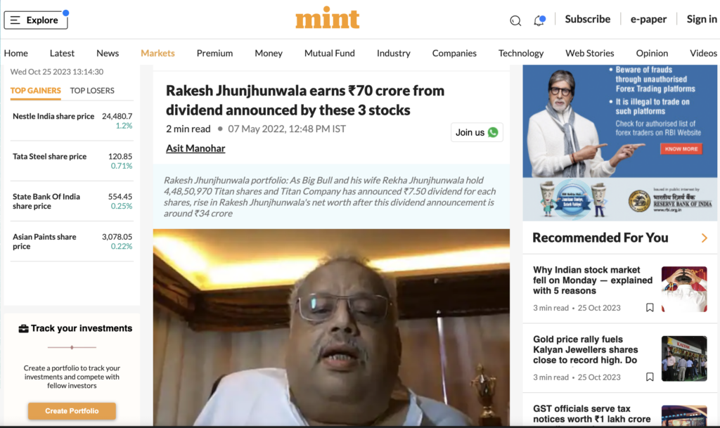 Last year, Mint reported on Rakesh Jhunjhunwala, a stock market investor who benefits from stock value appreciation and company dividends.