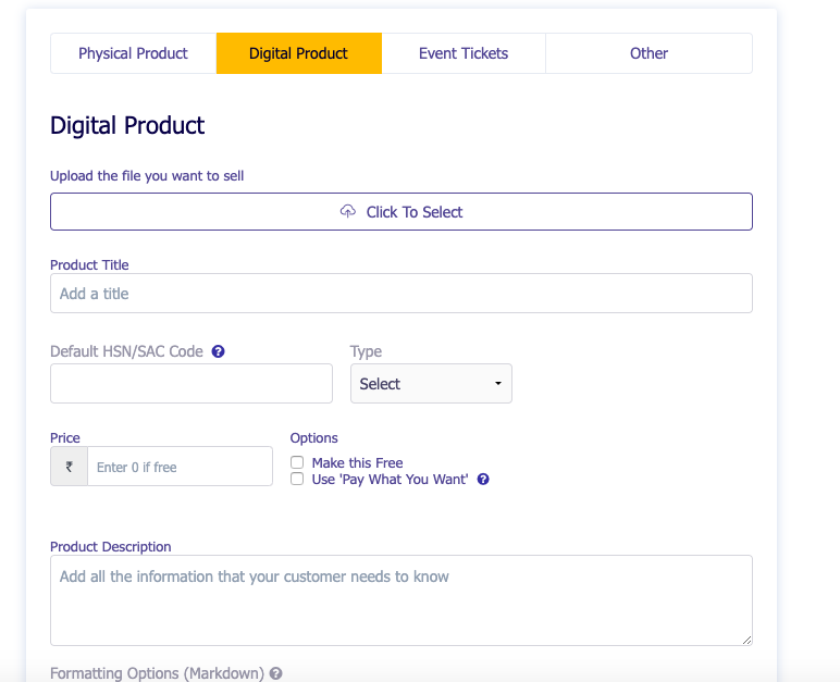 Besides these core features, freelancers use Instamojo by creating digital goods on the dashboard. Sign up with Instamojo and once you are in the dashboard: