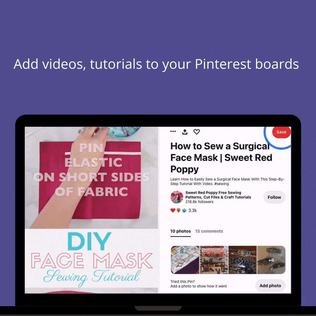 Share inspirational DIY videos and articles to your pin boards too. Allows customers to try something new for themselves, via your Pinterest account!