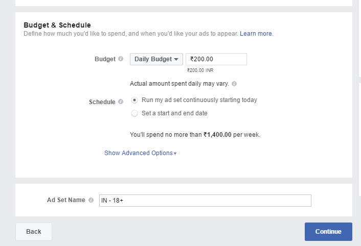 You can also set the budget of your ad: how much you want to spend per day so you can keep a tab on how long you want to run the ad and how much you want to invest in the ad.