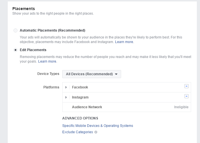 Your ad set comprises the demographics of who you want to show it to like age, location, gender, etc. Here, you can set the time of your ad (how long you want to run it) and schedule the frequency of the ad. You could also opt for default settings where Facebook decides where your ad will perform the best.
