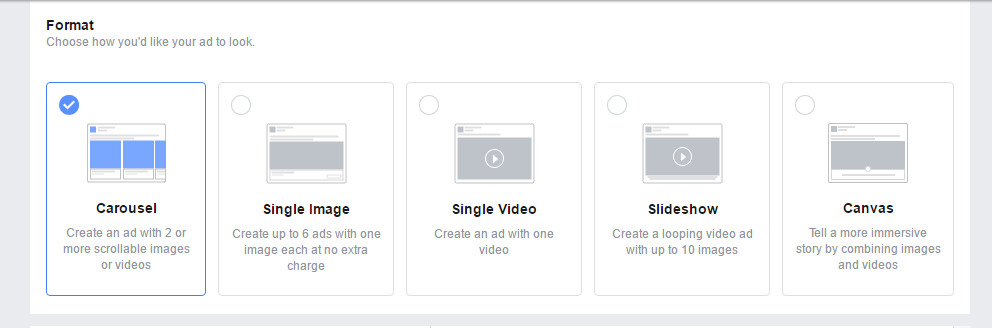 Choose the format of your ad – single image, image carousel, video etc. Use attractive, high-quality images or videos. Remember, this is an advertisement several people will see. You want to be convincing and quirky to get the viewer to click on your ad.