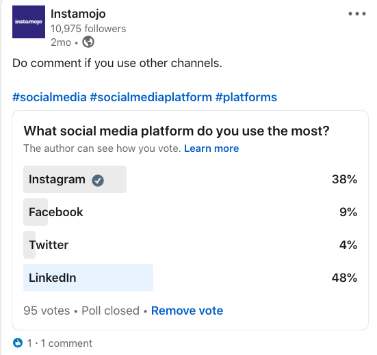 You can also interact with your network through Polls and PDFs. Polls can be a great way to understand how your network thinks. Here is an example of how a poll helps understand audience behaviour: