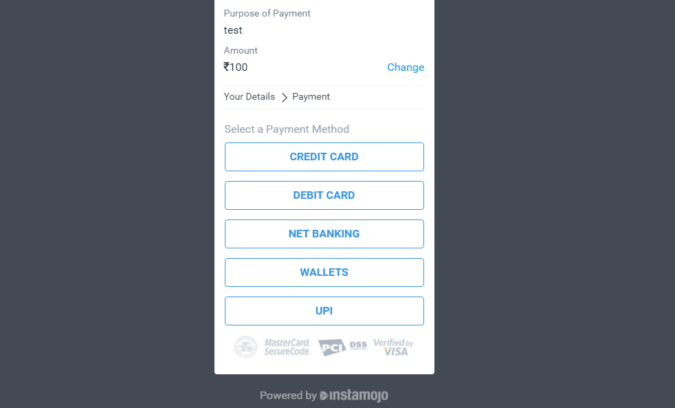 Upon signing up, you can create a customized payment link in your Instamojo Dashboard and send it to your customer/friend you need to collect money from.