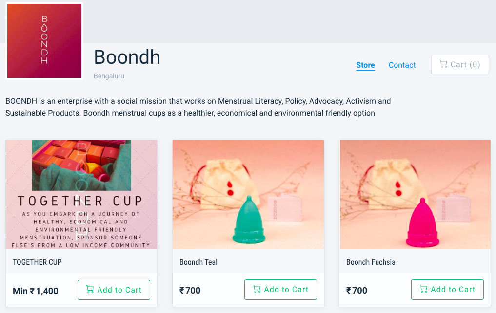 We recommend Boondh, an enterprise that aims to provide affordable and eco-friendly menstrual cups, all for a good cause!