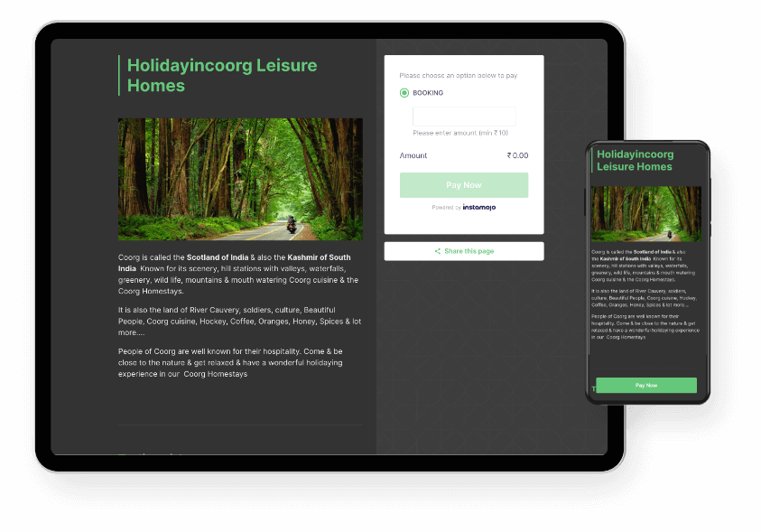 Sell hotel services online with Instamojo. Showcase your property and build your hotel business with powerful tools.