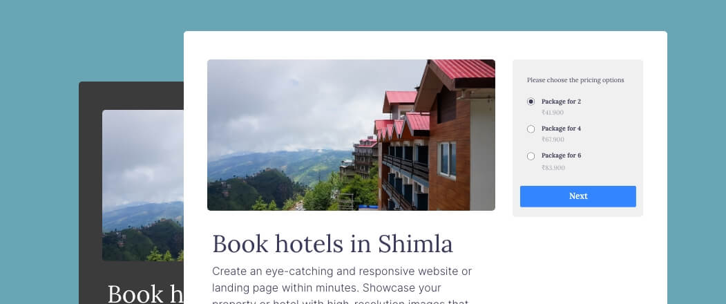 Create an eye-catching and responsive website or landing page within minutes. Showcase your property or hotel with high-resolution images that promote your property.