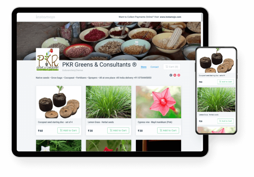 List plant products, collect payments, ship orders, and build a D2C brand with an Instamojo online store.