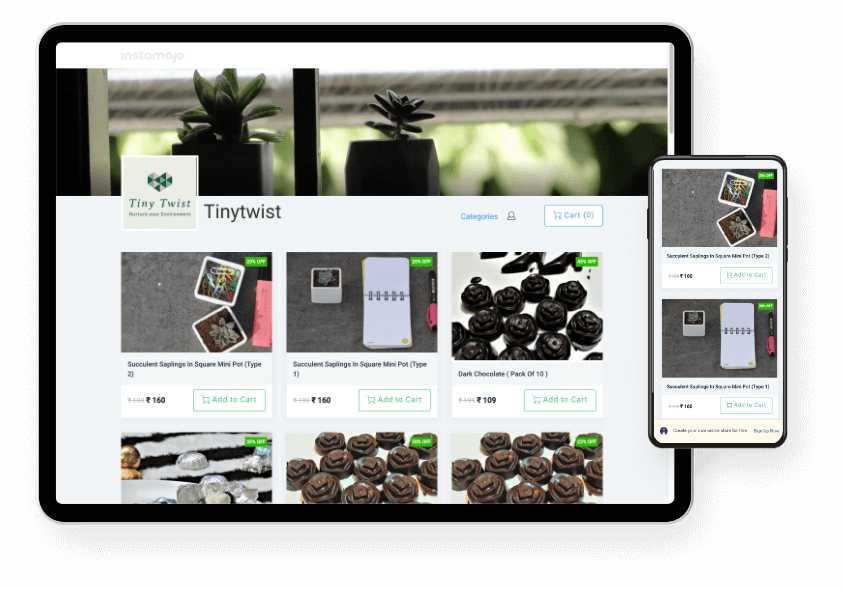 The cost of creating and managing an online store depends on several factors: your online store builder, the eCommerce features you need for your business and additional marketing tools. With Instamojo, you get premium website features at just ₹10/day. You can also choose to set up a free online store for your plants business on Instamojo store builder. See our detailed eCommerce pricing plans for your online store.